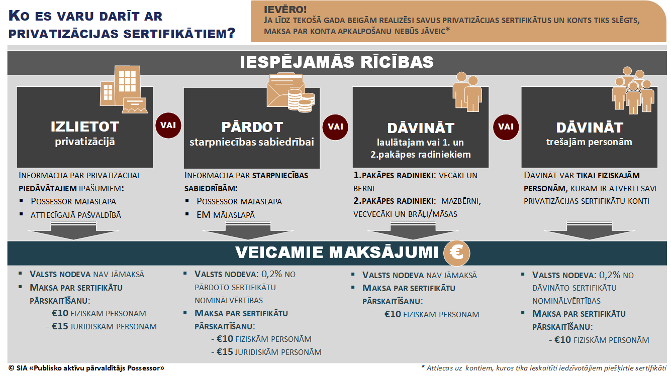 Possessor nodrošina privatizācijas sertifikātu kontu atvēršanu un apkalpošanu, kā arī veic sertifikātu pārskaitījumus fiziskām un juridiskām personām.